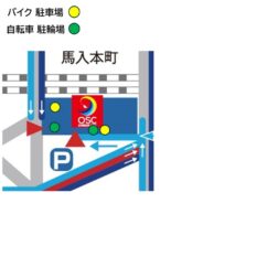 自転車またはバイクでお越しのお客様は、下記の駐輪場・駐車場をご利用ください。