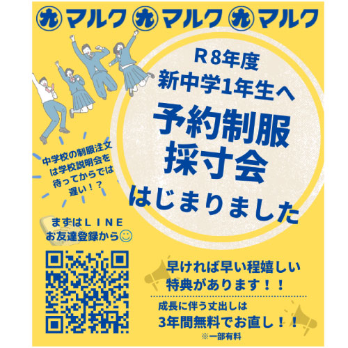 R8年度 中学制服採寸 注文始まります。